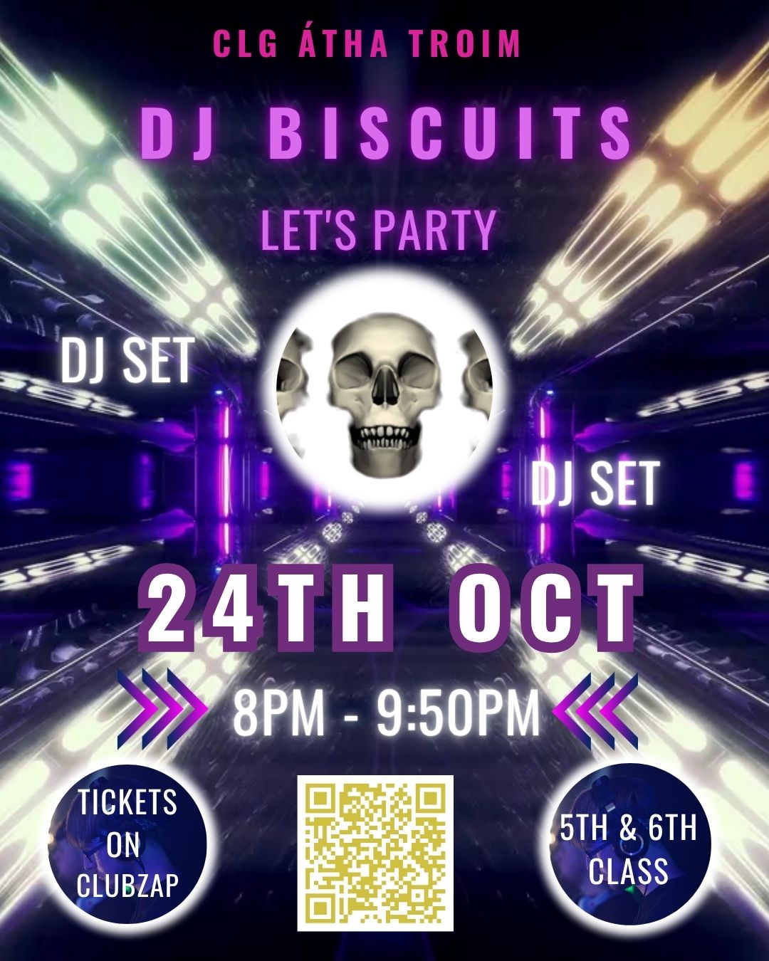 It’s Disco time with DJ Biscuits! Trim GAA from 8pm - 9:50pm Suitable for 5th and 6th class €12 per ticket